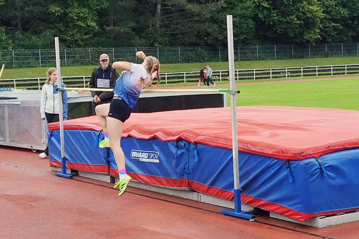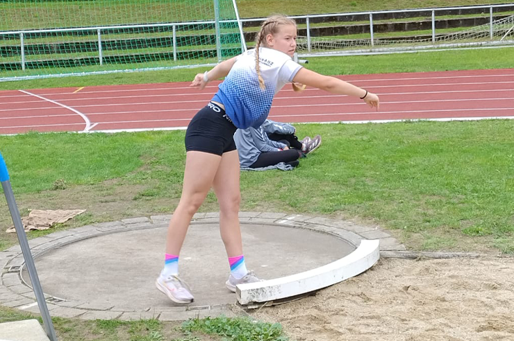 Am ersten Augustwochenende, fand wie immer der Jedermannzehnkampf mit integrierter OM Mehrkampf beim SWC Regensburg statt. In diesem Jahr nahm auch unsere junge Sportlerin Charlotte Müller im 4-Kampf daran teil. Bei sehr widrigen Bedingungen, mit immer wieder starken Regenfällen, musste sie gleich in der ersten Disziplin, dem Hochsprung ran. Nach zwei Fehlversuchen bei der gewählten Einstiegshöhe klappte dann der dritte Versuch und es ging ohne größere Probleme bis 1,28m hoch. Auch die anderen Disziplinen waren Witterungsbedingt im „normalen“ Bereich. Die 100m wurden in 14,72sec absolviert, im Weitsprung ging es auf 4,17m und beim Kugelstoß wurden es 7,35m.