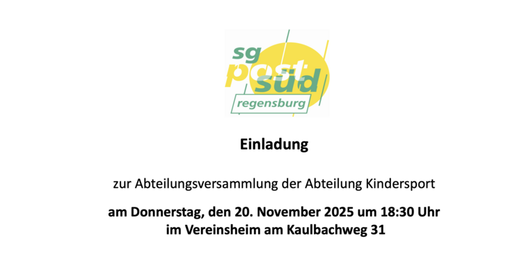 Einladung zur Abteilungsversammlung der Kindersportabteilung mit Neuwahlen am 20. November 2025 um 18:30 Uhr