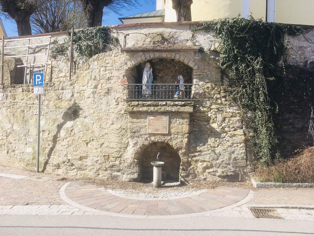 Die Wanderung begann wieder an der Pfarrkirche, die Start und Ziel des Besinnungsweges ist. Der Weg war abwechslungsreich, führte auf und ab durch den Wald und entlang von Feldern und Wiesen. Jeder Wanderer hatte auch eine Vorstellung/Ahnung von den „herrlichen Ausblicken“, wenn oder falls das Wetter mitspielt.